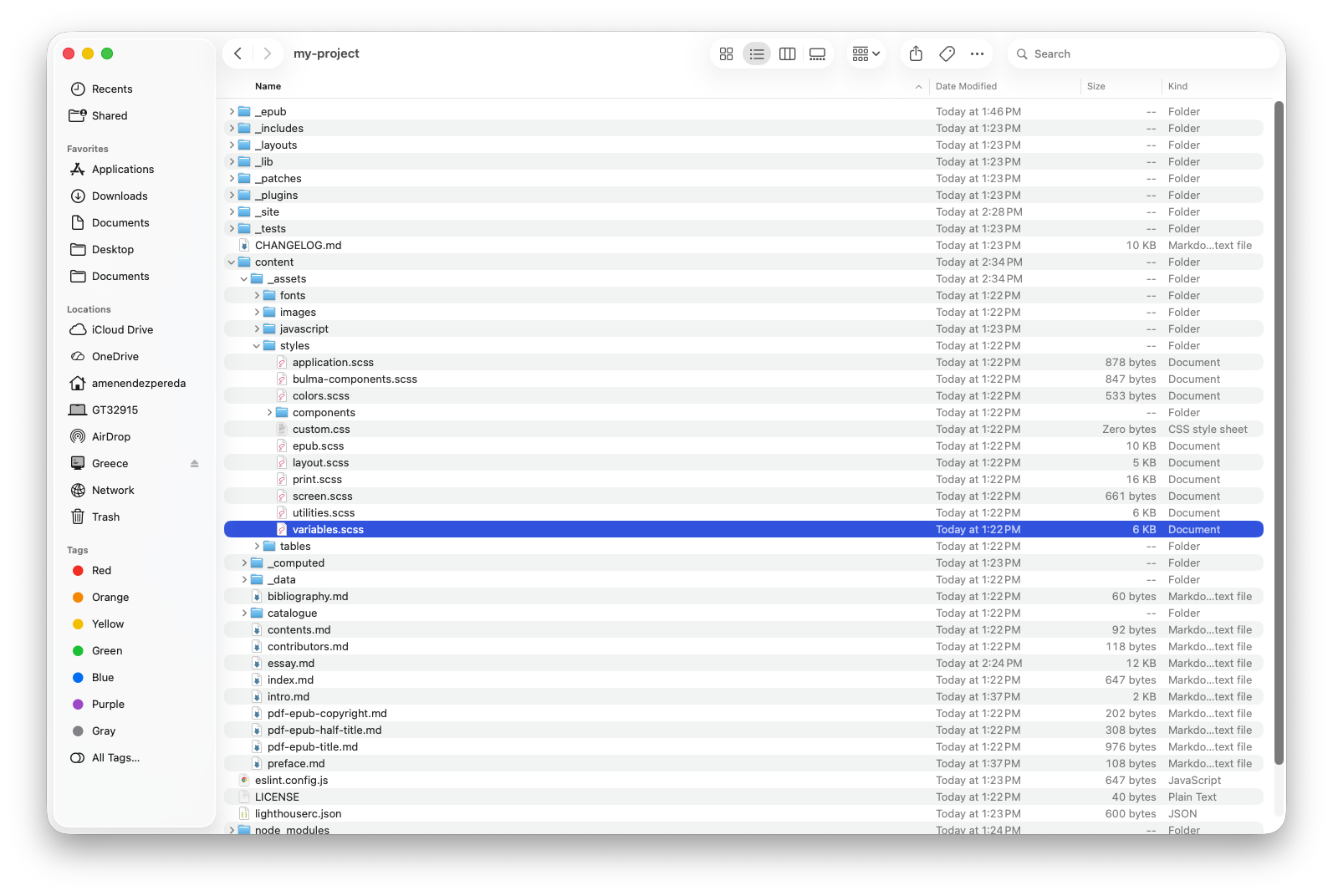 Screenshot of the variables.scss file in the in the Z_assets/styles/ directory.